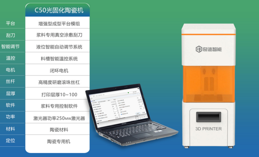 奇迹智能C50下沉式SLA激光固化陶瓷3D打印机,依托SLA激光固化技术原理与创新性结构设计,从制造逻辑上颠覆传统局限,将0.5mm微孔陶瓷件的精准成型转化为稳定、高效的标准化流程,为精密陶瓷制造注入革命性动能。
