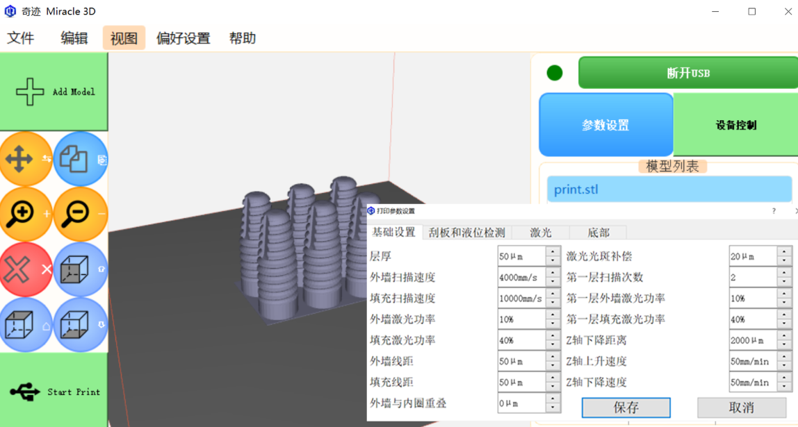 C50搭载的是下沉式SLA激光固化技术,这也是它能攻克高难度打印的核心关键:这项技术能将激光光斑精准集中到0.04mm直径的范围内,单位面积光强更高,能轻松穿透并固化氮化硅浆料,精准捕捉0.22mm的薄壁细节,不会出现偏移、失真的情况;更重要的是,它的全流程参数可自主调节,用户能根据氮化硅材料的特性针对性适配打印参数,进一步提升成型效果;同时成型过程稳定,大大提升了打印成功率,避免了材料和时间的浪费。
