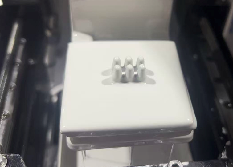 当打印平台缓缓升起时,客户当场就惊了:竟然真的成功打出来了,初胚表面肉眼看不到明显瑕疵!之后,客户还全程跟随工程师到清洗池,亲眼看着产品完成清洗、吹干工序。吹干后的模型更是让人惊喜:没有任何变形、塌边的情况,轮廓线条干净利落,表面没有一丝毛刺,完全超出了他的预期!要知道,实现这一切的,只是一台定价19800元的陶瓷机!